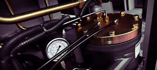 The compressed air is discharged through valves into receiving tanks at excessive pressure. The compressor and the tank are usually mounted together in a skid or body as a packaged unit.